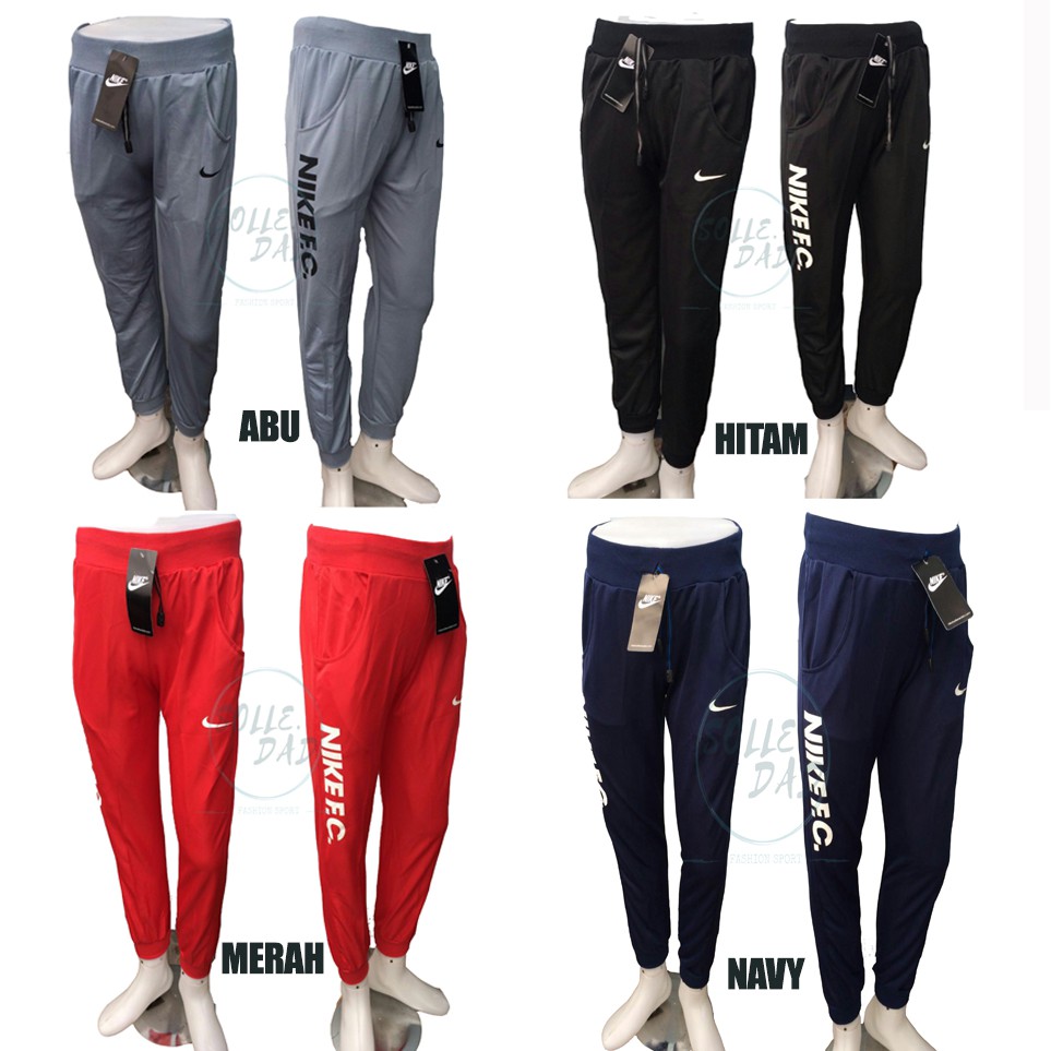 Celana training merk nike. Celana yang identik dari potongan yang sedikit longgar dan memiliki karet pada bagian kaki yang akan membuat tampak lebih mirip dari type celana training pria potongan karet pada ujung kaki celana ini membuat kamu bisa lebih oke jika mengaplikasikannya dengan sepatu yang keren sehingga tampilanmu lebih terlihat stylish dan keren. Di tokopedia kamu bisa temukan beraneka model warna ukuran celana training nike yang terlengkap dengan harga terbaru. Miliki celana training nike yang nyaman dipakai sehingga membuatmu semakin semangat bergerak. Berdasarkan merk anda juga dapat memilih celana olahraga berdasarkan merk.